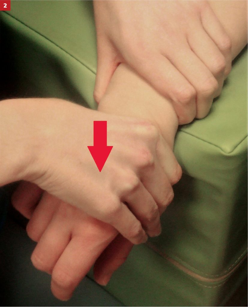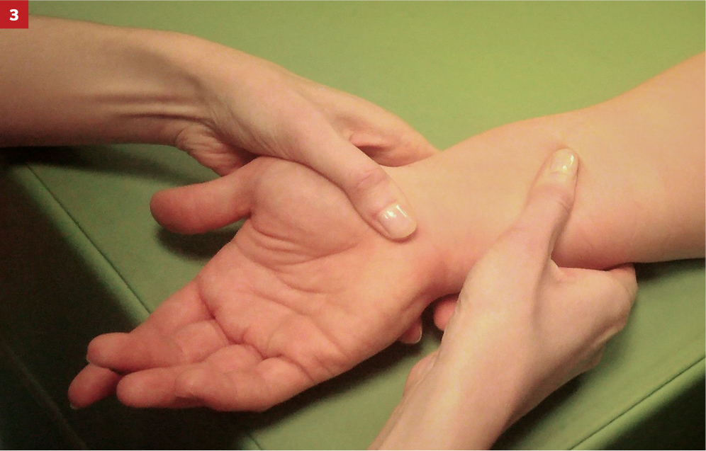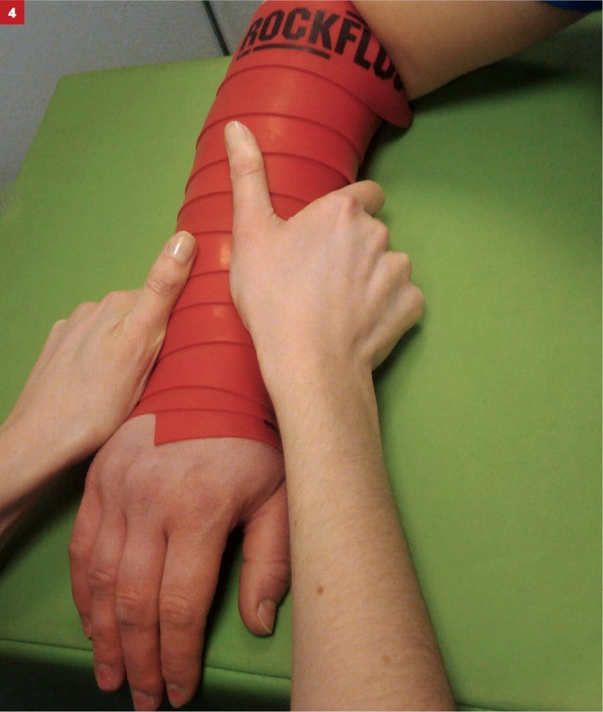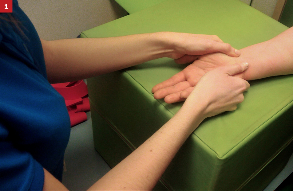 Fot. 1. Mobilizacja poprzeczna tkanek okolicy kanału nadgarstka; fot. archiwum autorek -