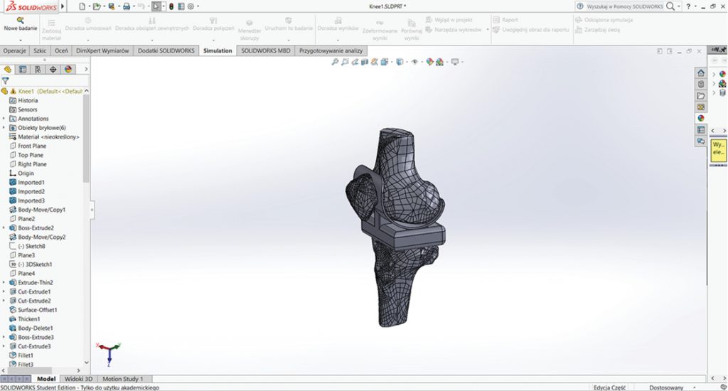 Projekt indywidualnej protezy stawu kolanowego w odniesieniu do dostępnych na rynku rozwiązań technicznych