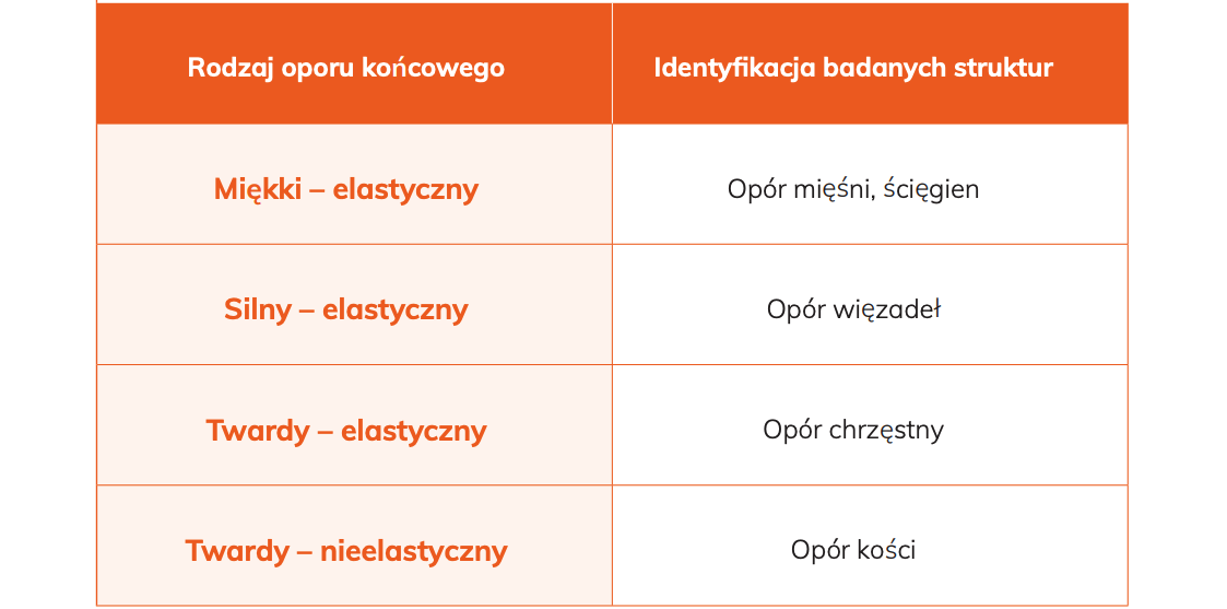 - badanie oporu końcowego poszczególnych zakresów ruchu (badanie elastyczności),