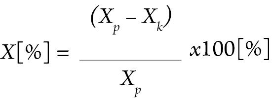 Xk – średnia wartość zmierzonego parametru bezpośrednio po zakończeniu masażu wibracyjnego/15 minut po zakończeniu masażu wibracyjnego.